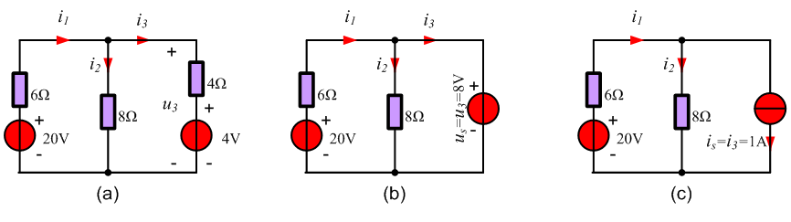 任意一个线性电路,其中第k条支路的电压已知为(电流为),那么就可以用一个电压等于的理想电压源(电流等于的独立电流源)来替代该支路,替代前后电路中各处电压和电流均保持不变。