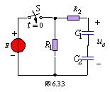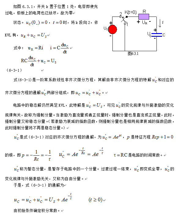 如图 6.3.1,开关 k 置于 1 处,电容即使充过电,极板上的电荷也已放尽,故为零状态。