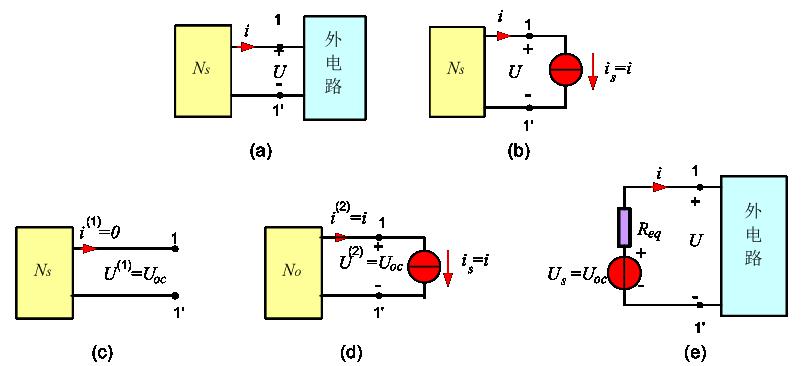 根据叠加定理,令,一端口内所有电源共同作用得图c,则
