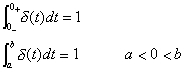 需要说明的是单位冲激函数的积分上、下限也可以不是正、负无穷,只要积分的上、下限包围了函数存在的那一点,积分就等于1,故有下面两式成立