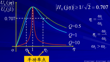 RLC串联谐振电路的谐振曲线如图1.3所示,分析谐振曲线,讨论下面问题: