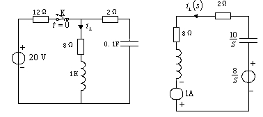 时电路的S域模型。作S域模型时,注意电感和电容元件由于初始状态产生的附加电压源和附加电流源,以及电容电压