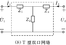 (2)如果给定二端口网络的是Z参数,确定图 (b)二端口网络T型等效电路中的Z1、Z2 、Z3 的值。可先写出Τ型等效电路的回路电流方程: