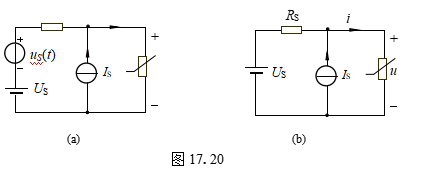 如图17.20所示非线性电阻电路,非线性电阻的电压、电流关系关系为