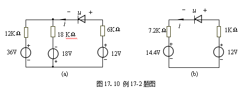 由式(17-9)特性方程及图17.12(a)特性曲线可知:当i < ib 时,u = 0,当 i > ib 时,