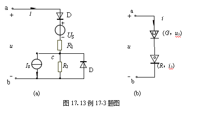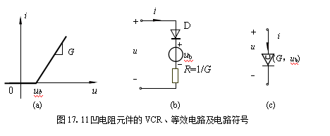 图17.11(a)所示,G表示图示线性区段的斜率,ub表示折点电压。凹电阻元件的特性方程为