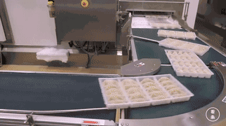 柔软的气动抓手,连特别柔软的饺子都能安全抓起,而且从抓取到安放都定位精准