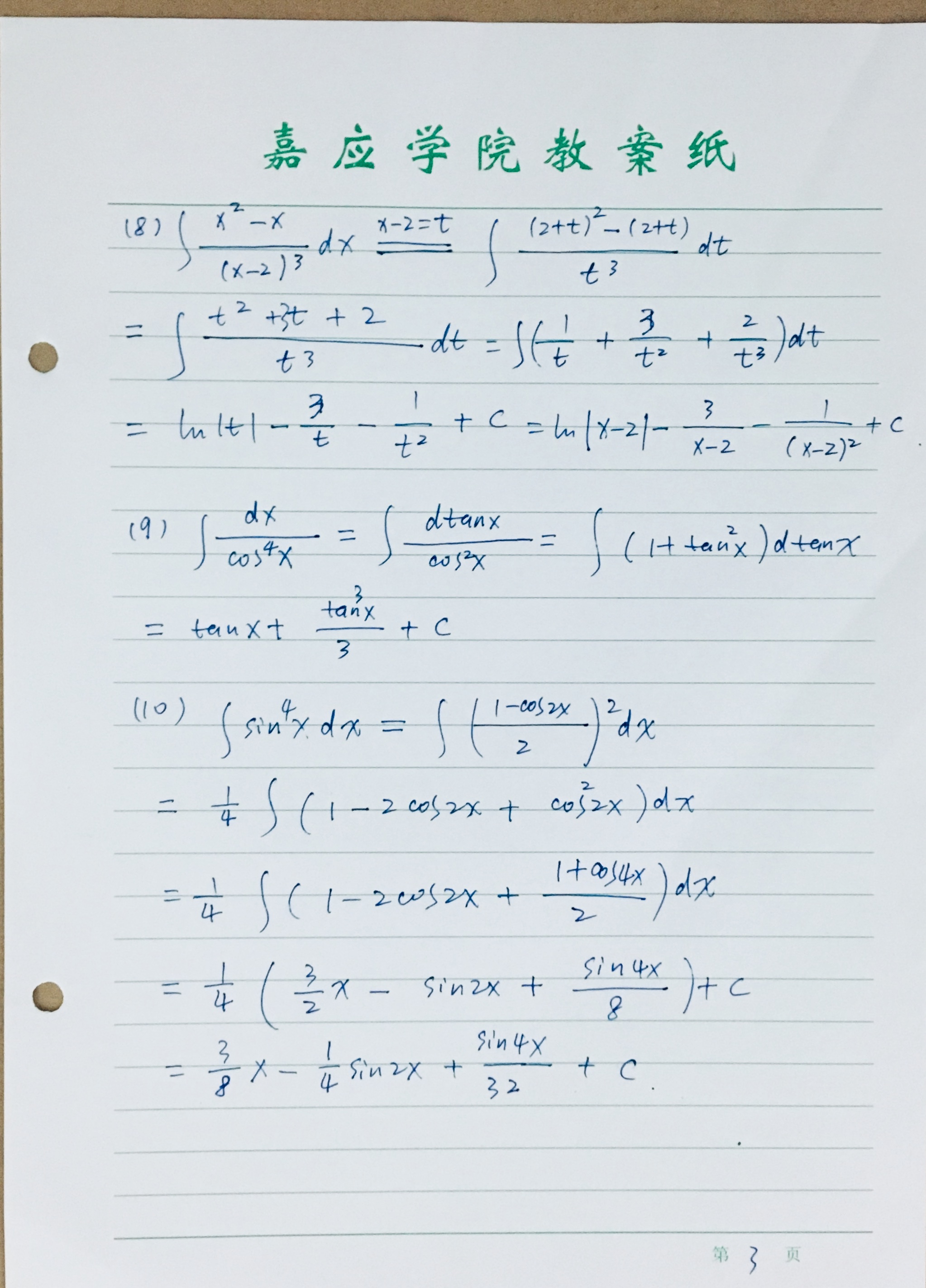 9.6 换元积分法、分部积分法、泰勒公式的积分型余项