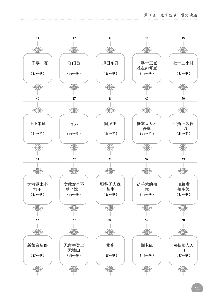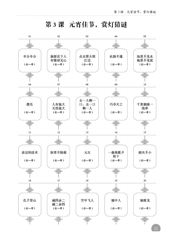 2.练习猜灯谜,培养兴趣爱好,积极培养语言思维能力,不断提高语文综合素养。