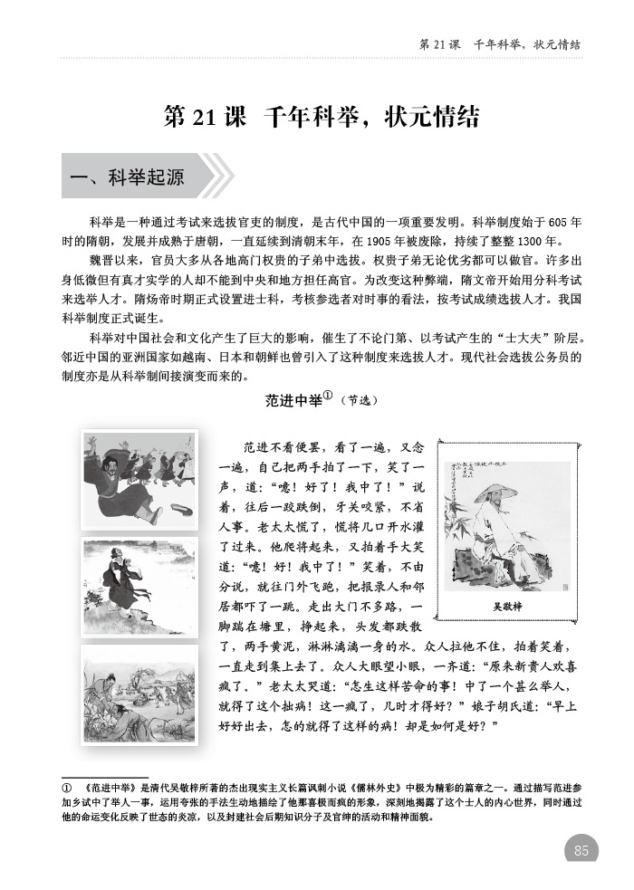 2.从范进中举后面的故事中,学习科举考试的积极意义,勉励自己持之以恒,获取成功。