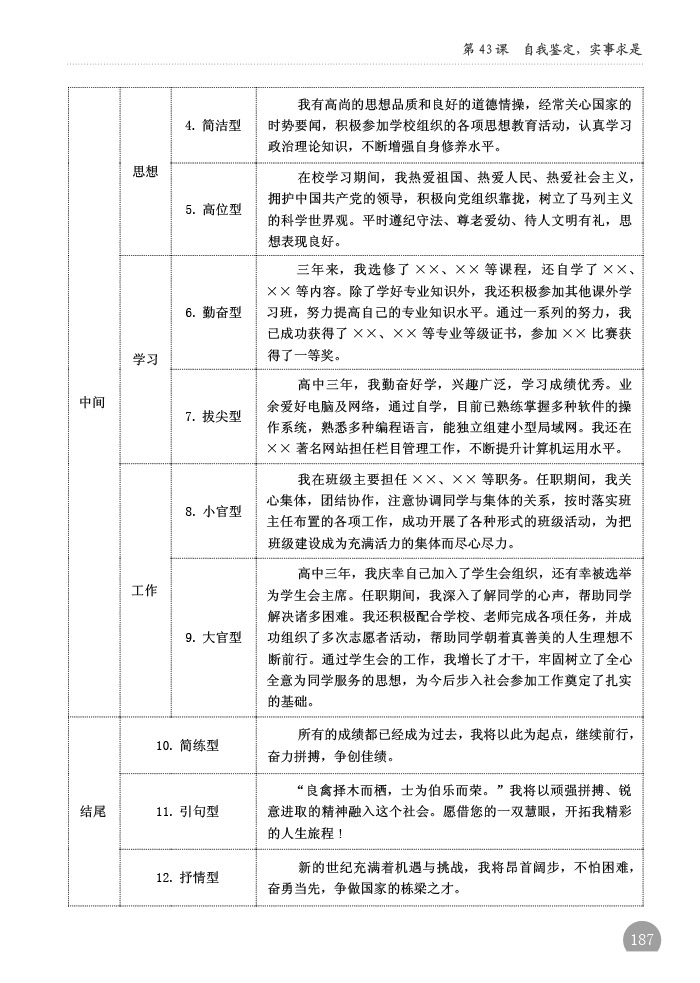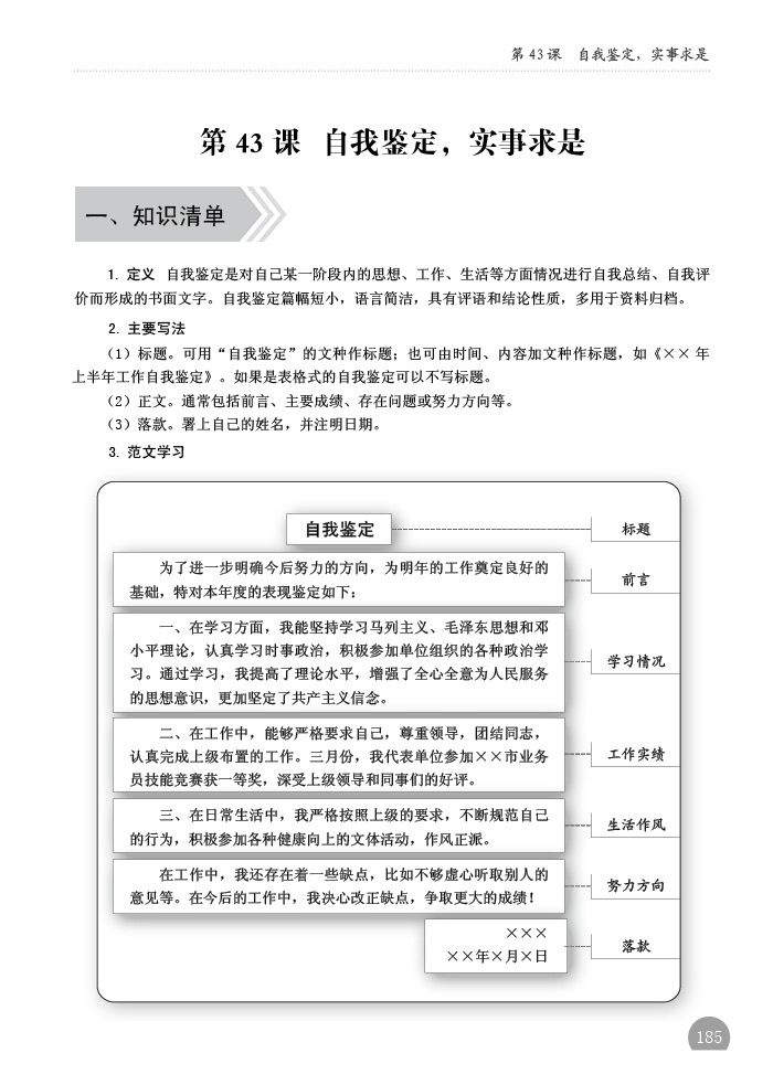 第43课、自我鉴定,实事求是