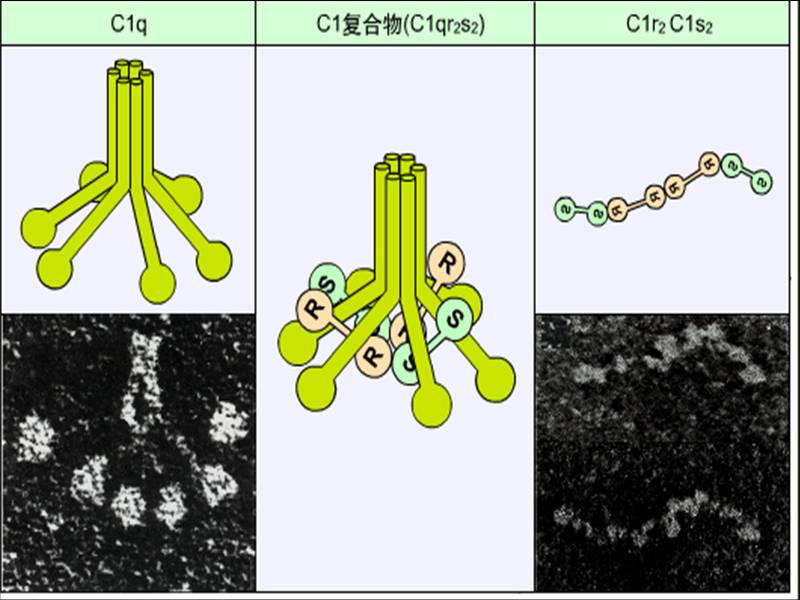 C1q须与2个以上Fc段结合后才发生构型改变,使与C1q非共价结合的两分子C1r相互裂解而活化,活化的C1r激活C1s的丝氨酸蛋白酶活性。