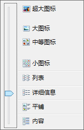 ②图标显示方式。文件夹窗口中的图标可以“大图标”、“小图标”、“列表”和“详细资料”四种方式显示。
