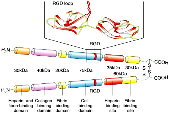 ★纤连蛋白(fibronectin):细胞外基质中的一种黏附蛋白,含有七
