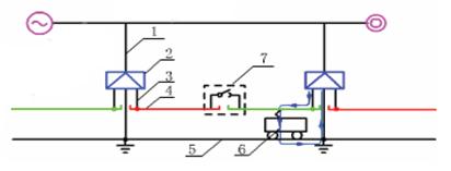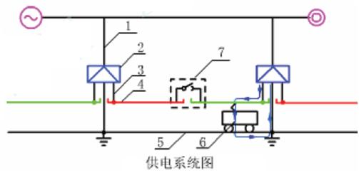 1-输电线;2-牵引变电所;3-馈电线;4-接触网;5-电力机车;6-钢轨;7-分区亭