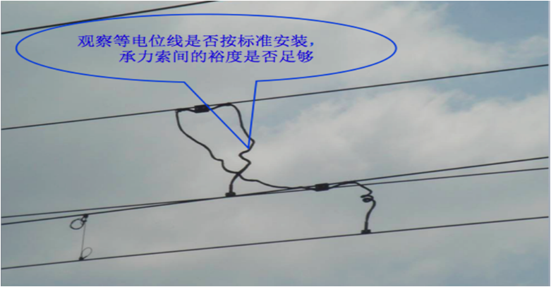 ①各种线索(包括接触线、承力索、供电线、捷接线、回流线、架空地线、正馈线、保护线、加强线、中锚辅助绳、吸上线和软横跨的线索等)有无烧伤或损坏,驰度是否满足要求。
