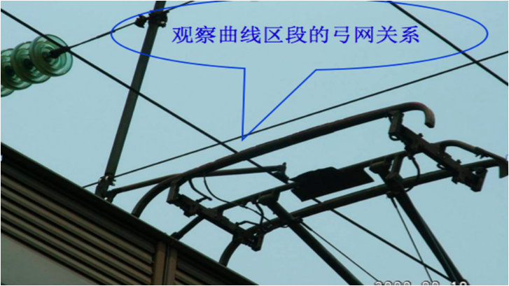 观察的主要内容:接触网主导流回路和零部件有无过热变色、绝缘件有无闪络放电现象以及电力机车受电弓运行情况。