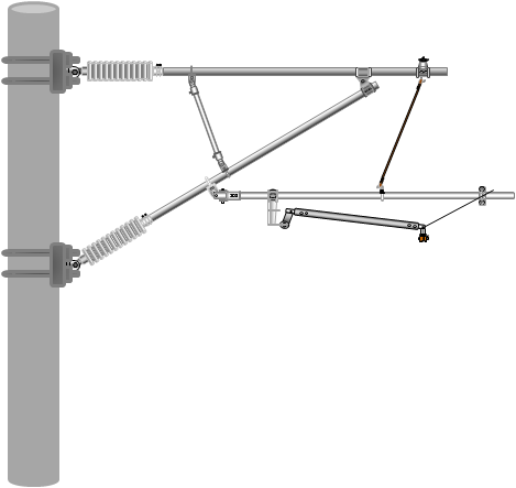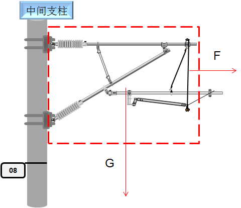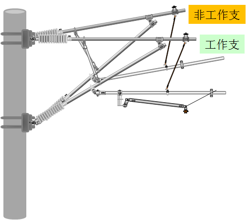 用于锚段关节两锚柱之间实现工作支与非工作支转换的支柱。承受工作支和非工作支的重力及水平力。