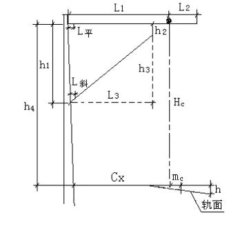 h4——支柱侧面限界测量点至平腕臂支柱固定点之间的垂直距离(m);