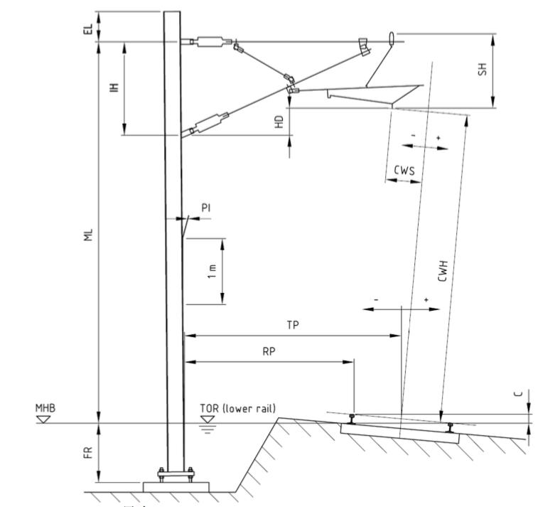 TP: 轨道中心线至电杆内侧之间的水平距离