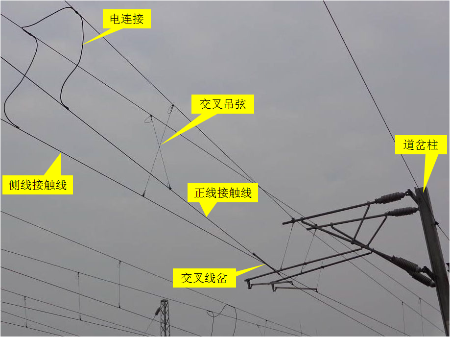 交叉线岔在两接触线交叉处用限制管固定,并限制两相交接触线位置的设备,称为接触网交叉线岔。