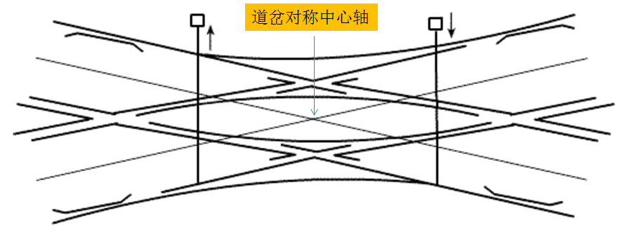 对于对称(双开)及复式交分道岔,其线岔的布置形式类似单开道岔。