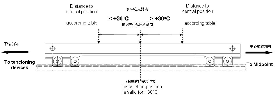 如在平均温度安装时,限制管中心重合于接触线交叉点,安装温度高于平均温度,应略偏于下锚方向,低于平均温度,应略偏于中心锚结方向。有必要进行精确定位的时候,可以通过线索线膨胀公式计算出限制管的准确安装位置。