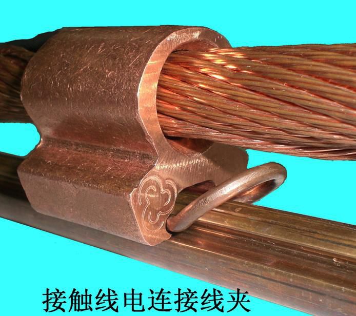 电连接由承力索电连接线夹、接触线电连接线夹、软铜绞线组成。