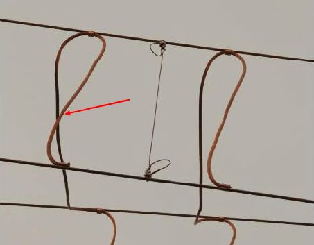 注意:过松、过紧的电连接线很容易导致运行时发生线夹脱落及打弓事故。
