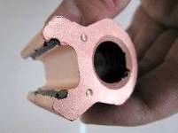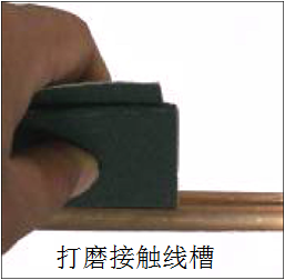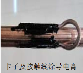(2)对安装处接触线沟槽表面、线夹内表面及通孔等处分别均匀的涂一层导电膏。