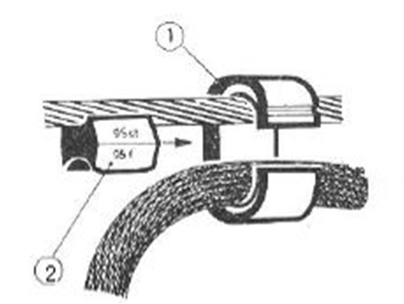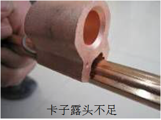 9)压接式接触线电连接线夹与线槽契合的U形螺纹卡子应平行压接于线槽内,不得跳出接触线线槽。U形螺纹卡子应保证卡子插入后,另一端露头1~3mm。
