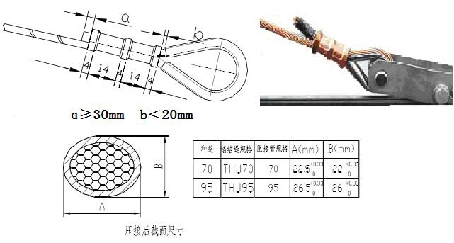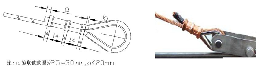 a.锚结绳与心形环贴紧,压接管尽量靠近心形环。余头露出≥30 mm。