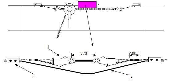 1-双耳楔形线夹; 2-770型双环杆;3-短接电联结线;4-承力索中锚线夹