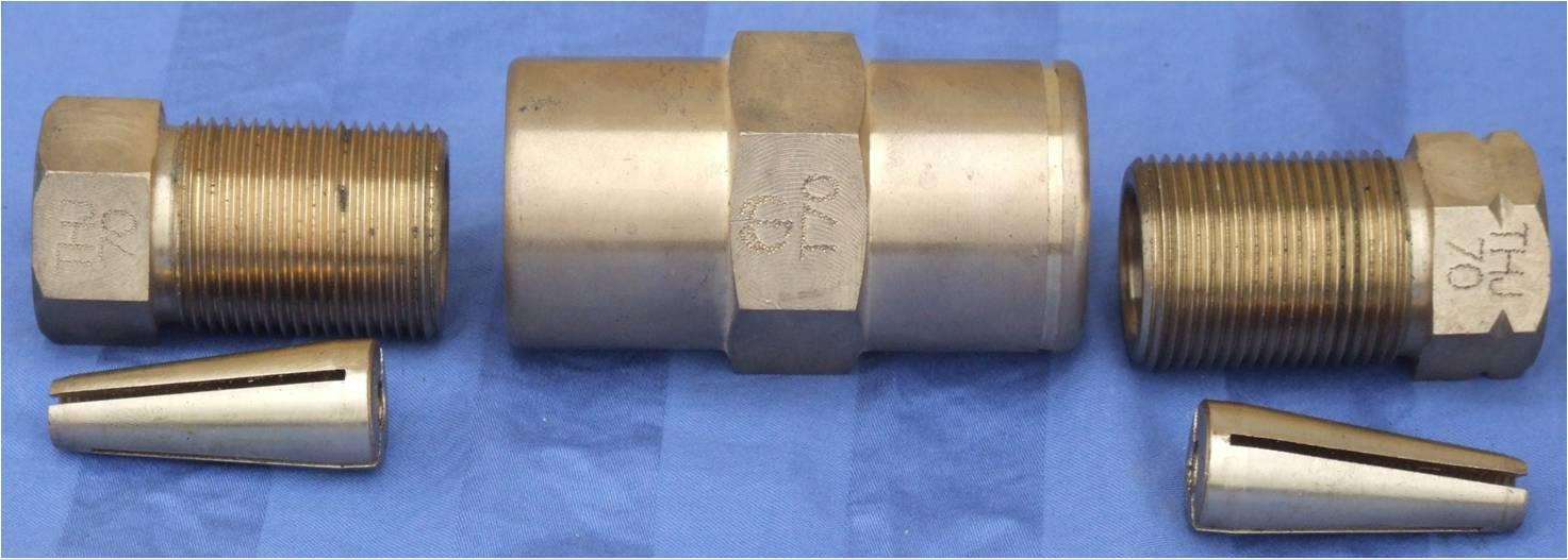 7)将两锥筒螺栓与连接套筒连接,先用手拧,两锥筒螺栓旋入连接套筒长度应基本相等。