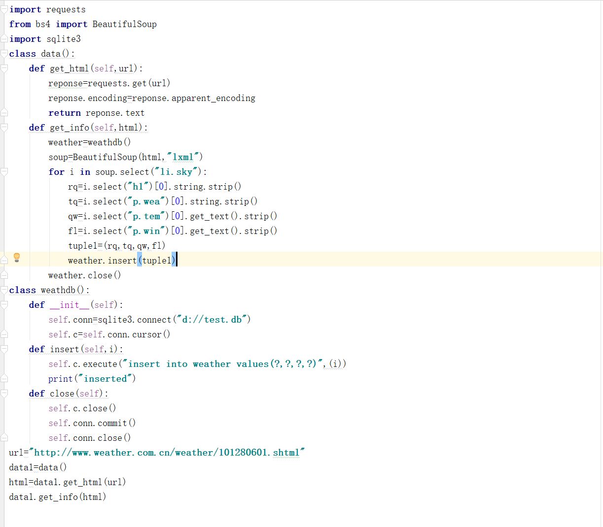 深圳7天天气预报数据存入sqlite3数据库中源码: