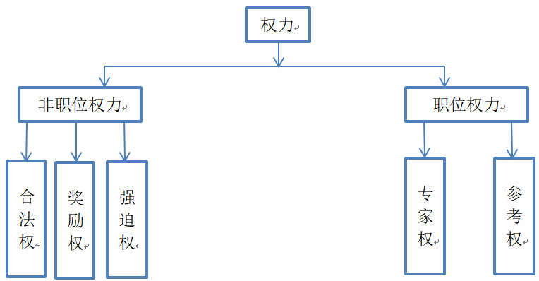 5.领导者影响他人的基础是权力。流行的分类是将其划分为两类五种:职位权力(合法权、奖励权、强迫权)和非职位权力(专家权、参考权)。