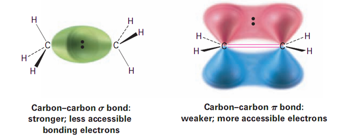 烯烃分子中的π电子有较大活动性,表现出亲核性,容易与亲电试剂发生亲电加成反应。