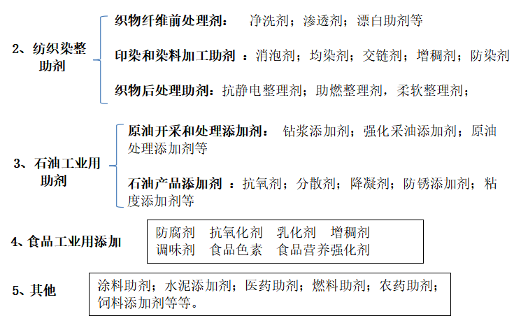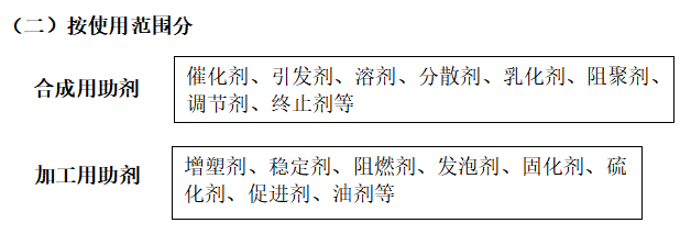 助剂又称“添加剂”、“配合剂”,是一类广泛应用于塑料、橡胶、合成纤维、涂料、油墨、造纸、皮革、纺织、印染、食品、化妆品、水泥、石油制品等工业产品的生产和加工过程,旨在改善其加工性能或赋予制品某些特定功能的辅助化学品。例如: