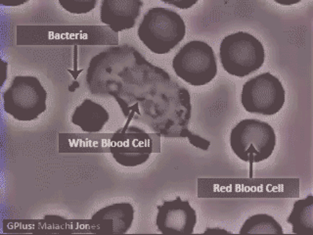 下图是白细胞吞噬细菌的动态图片,为真实拍摄,倍速播放的效果。