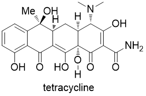 四环素类抗生素是由放线菌产生的一类广谱天然抗生素及半合成抗生素,其结构均为菲烷的基本骨架。(就是四个并环结构,所以叫“四环素”)