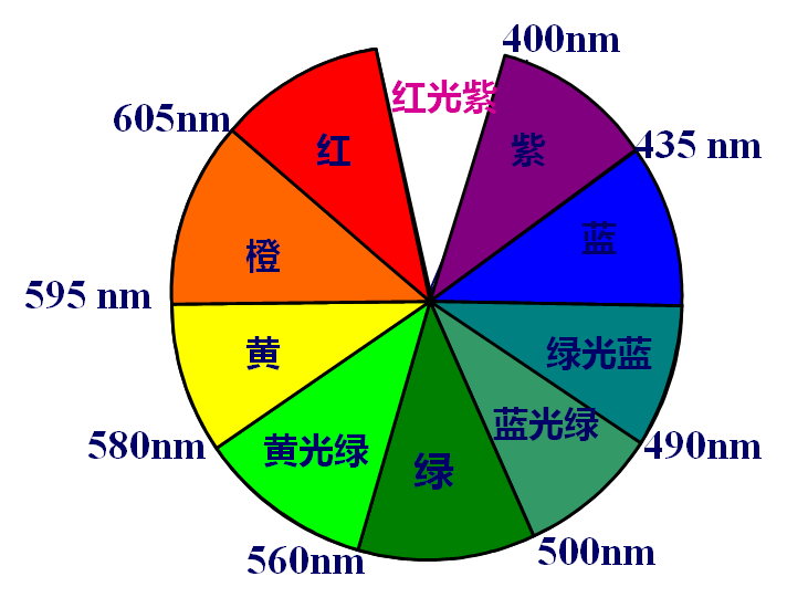 光的颜色和光的波长是相互对应的。可见光的波长范围在380~780nm。