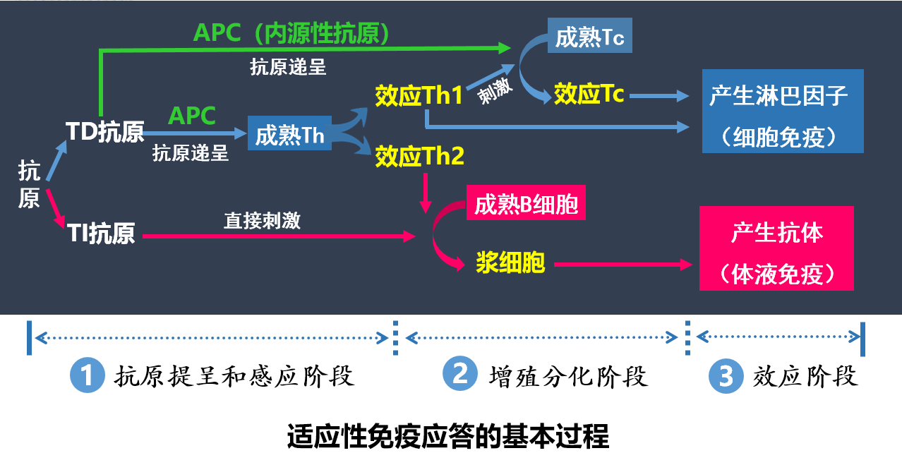 1.感应阶段 又称为抗原提呈和识别阶段。此阶段包括抗原提呈细胞对抗原的摄取、加工处理、提呈,以及免疫活性细胞对抗原的识别。