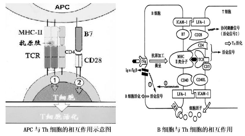细胞因子的促进作用:除双信号外,细胞因子对TH细胞的活化也起着重要作用。活化的APC和T细胞分泌的IL-1、IL-2等细胞因子作用与Th细胞促进TH细胞充分活化。