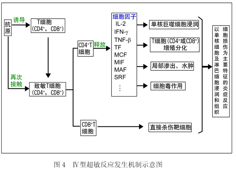 Ⅳ型超敏反应的发生机制实质上与T细胞介导的细胞免疫应答基本相同,当细胞免疫反应正常时可起到免疫保护作用,若反应过于强烈,超出正常范围,可造成机体组织损伤。