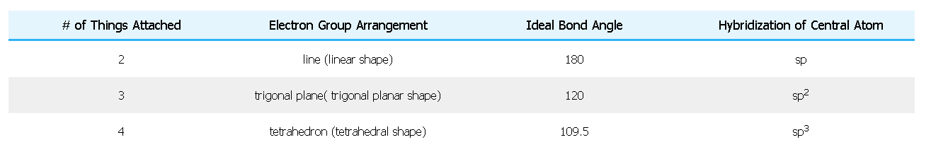 b) Find the Electron Group Arrangement (EGA) in the table below