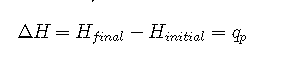 The subscript is used here to emphasize that this equation is true only for a process that occurs at constant pressure. we see that at constant pressure the change in enthalpy, of the system, defined as , is equal to the heat gained or lost.