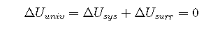 where the subscripts univ, sys, and surr refer to the universe, the system, and the surroundings, respectively. Thus the change in energy of a system is identical in magnitude but opposite in sign to the change in energy of its surroundings.