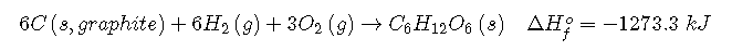 The overall enthalpy change for conversion of the reactants (1 mol of glucose and 6 mol of O2) to the elements is therefore +1273.3 kJ.
