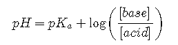 Each time we increase the [base]/[acid] ratio by 10, the pH of the solution increases by 1 pH unit. Conversely, if the [base]/[acid] ratio is 0.1, then pH = − 1. Each additional factor-of-10 decrease in the [base]/[acid] ratio causes the pH to decrease by 1 pH unit.