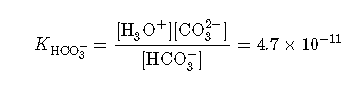 is larger than by a factor of 104, so H2CO3 is the dominant producer of hydronium ion in the solution. This means that little of the formed by the ionization of H2CO3 ionizes to give hydronium ions (and carbonate ions), and the concentrations of H3O+ and are practically equal in a pure aqueous solution of H2CO3.